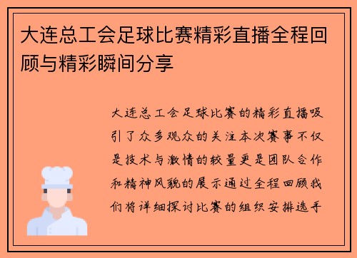 大连总工会足球比赛精彩直播全程回顾与精彩瞬间分享