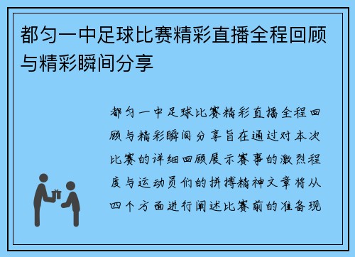 都匀一中足球比赛精彩直播全程回顾与精彩瞬间分享